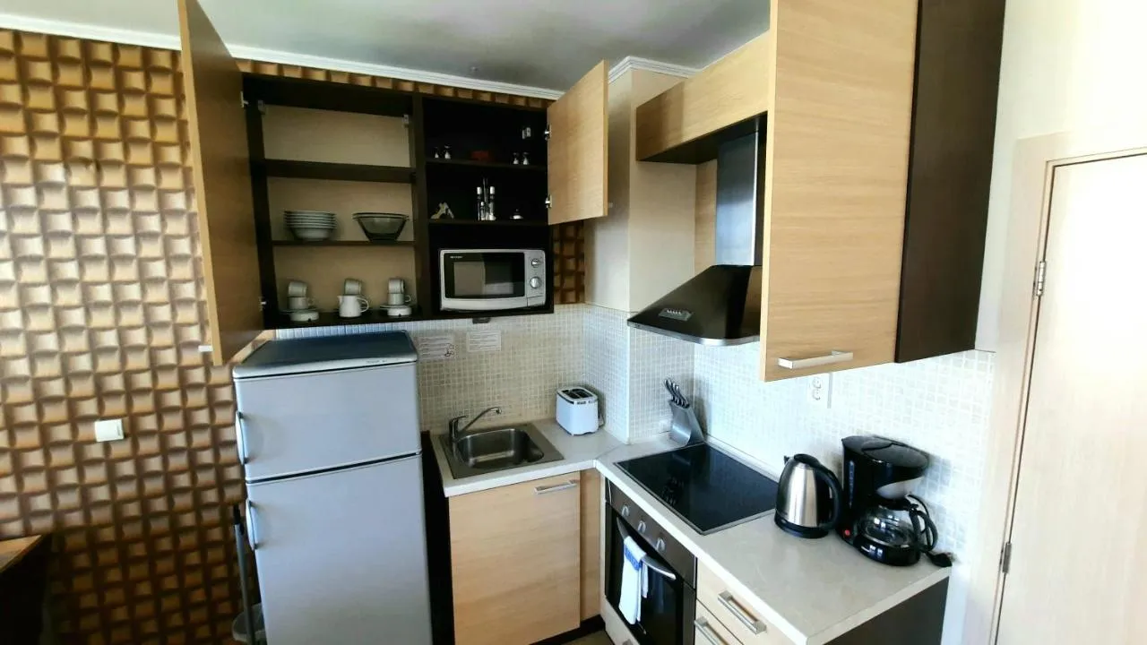 Dimensiuni: 90 mp Numar de camere: 2 camere Guests will have a special experience as this apartment offers a pool with a view and a sauna. This spacious apartment comprises 1 living room, 2 separate bedrooms and 1 bathroom with a shower and free toiletries. The well-equipped kitchen features a stovetop, a refrigerator, kitchenware and an oven. Featuring a terrace with sea views, this apartment also provides air conditioning and a flat-screen TV with cable channels. The unit offers 4 beds. Baie privată cu duș