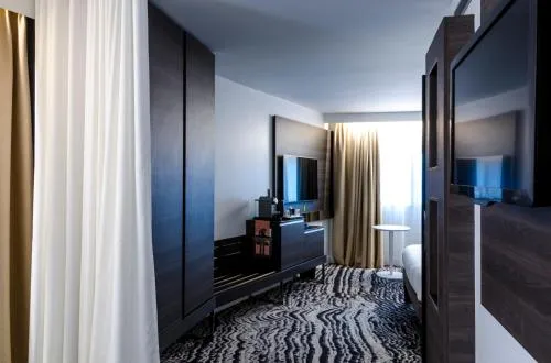 General : Seif pentru laptop Seif Fier de călcat Facilităţi de călcat Încălzire Izolare fonică Aer condiţionat Baie: Halat de baie Prosoape Papuci de casă Uscător de păr Toaletă Hârtie igienică Cadă Baie privată Bucătărie: Mașină de cafea Cană fierbător Accesibilitate: Etaje superioare accesibile cu liftul Media/Tehnologie: TV cu ecran plat TV Telefon Canale prin cablu Canale prin satelit Servicii: Serviciu de trezire Zonă de living: Canapea Zonă de relaxare Facilităţile camerei: Priză lângă pat Canapea extensibilă Mâncăruri și băuturi: Aparat pentru prepararea de ceai/cafea Minibar Dormitor: Lenjerie de pat Garderobă sau dulap Vedere: Vedere la oraș Vedere la punct de atracţie Distanțare fizică: Aer condiționat individual pentru fiecare cameră de la proprietate