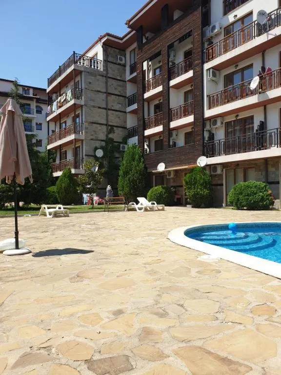 MitProt luks studio Panorama Bay 2 ap.105, situat în Sveti Vlas, oferă cazare cu aer condiționat, piscină privată, vedere la grădină și terasă. Oaspeții se pot bucura de un balcon și de un loc de joacă pentru copii. Parcarea privată poate fi organizată contra cost.
