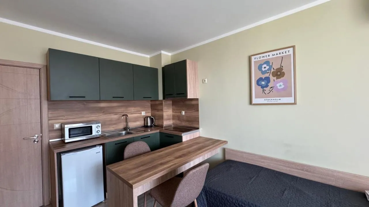 Supermarketuri și restaurante se pot găsi la o distanță de 20 de metri. Stația locală de autobuz este la 100 de metri distanță. Parcul Acvatic Nessebar poate fi atins în 10 km.