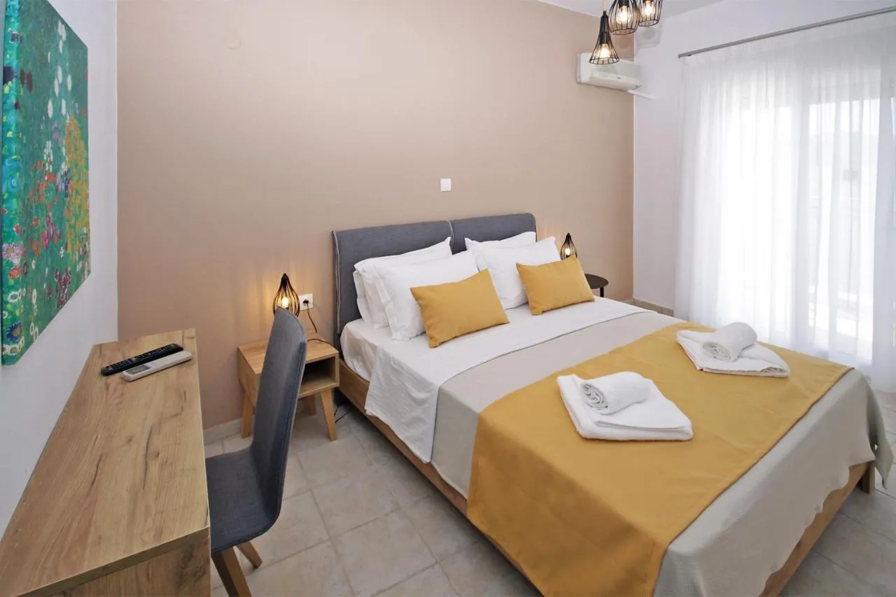 Vedere: Vedere Bucătărie: Frigider Cană fierbător Dormitor: Lenjerie de pat Garderobă sau dulap General : Pardoseală de gresie/marmură Aer condiţionat Media/Tehnologie: TV cu ecran plat Baie: Duş Prosoape Articole de toaletă gratuite Papuci de casă Baie privată Uscător de păr Exterior: Balcon