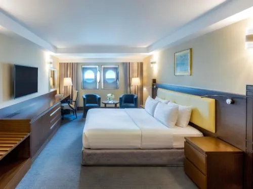 Baie: Halat de baie Prosoape Articole de toaletă gratuite Papuci de casă Uscător de păr Prosoape/lenjerie de pat contra cost Toaletă Duş bideu Hârtie igienică Cadă Baie privată Bucătărie: Mașină de cafea Frigider Cană fierbător General : Seif Fier de călcat Facilităţi de călcat Aer condiţionat Accesibilitate: Etaje superioare accesibile cu liftul Media/Tehnologie: TV cu ecran plat TV Telefon Canale prin satelit Servicii: Serviciu de trezire Zonă de living: Canapea Zonă de luat masa Exterior: Mobilier de grădină Balcon Facilităţile camerei: Priză lângă pat Mâncăruri și băuturi: Aparat pentru prepararea de ceai/cafea Dormitor: Lenjerie de pat Vedere: Vedere la oraș