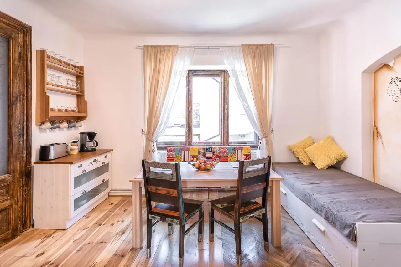 General : Pardoseală de lemn sau parchet Fier de călcat Facilităţi de călcat Hipoalergică Pardoseală de gresie/marmură Intrare privată Încălzire Aer condiţionat Detector de monoxid de carbon Izolare fonică Media/Tehnologie: TV cu ecran plat TV Serviciu de streaming (ex. Netflix) Canale prin cablu Canale prin satelit Vedere: Vedere la munte Vedere la curtea interioară Vedere la grădină Zonă de living: Zonă de relaxare Canapea Zonă de luat masa Baie: Articole de toaletă gratuite Hârtie igienică Prosoape Papuci de casă Uscător de păr Prosoape/lenjerie de pat contra cost Toaletă Duş Baie privată Exterior: Patio Terasă Balcon Zonă de luat masa în aer liber Bucătărie: Cuptor cu microunde Prăjitor de pâine Ustensile de bucătărie Produse de curățenie Mașină de cafea Masă Frigider Plită de gătit Chicinetă Cană fierbător Bucătărie Scaun înalt pentru copii Dormitor: Lenjerie de pat Facilităţile camerei: Canapea extensibilă uscător de rufe Priză lângă pat Accesibilitate: Etaje superioare accesibile doar pe scări Caracteristicile clădirii: Apartament privat în clădire Independentă Divertisment și servicii pentru familii: Jocuri și puzzle-uri Mâncăruri și băuturi: Aparat pentru prepararea de ceai/cafea Distanțare fizică: Aer condiționat individual pentru fiecare cameră de la proprietate Curățenie și dezinfectare: Dezinfectant pentru mâini