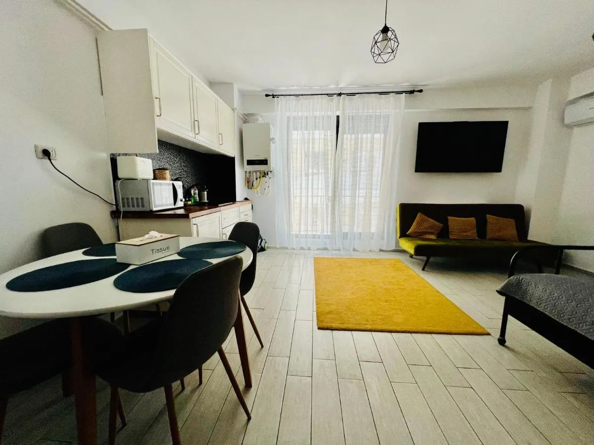 Dimensiuni: 38 mp Numar de camere: 2 camere This air-conditioned apartment includes 1 living room, 1 separate bedroom and 1 bathroom with a bath. The apartment's kitchenette, which has a tea and coffee maker, is available for cooking and storing food. Boasting a balcony with sea views, this apartment also offers a washing machine and a flat-screen TV with cable channels. The unit has 3 beds.