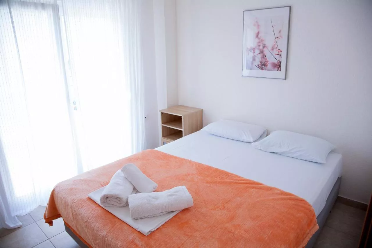 Dimensiuni: 60 mp Numar de camere: 2 camere Air-conditioned apartment with 2 bedrooms. It is 50 metres from the beach and has a balcony. A fully equipped kitchen with ceramic hobs, fridge and coffee maker. There is a dining/seating area as well. Baie privată cu duș