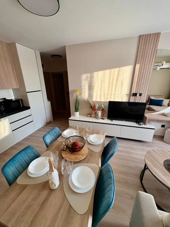 Situat în Sveti Vlas, Sorrento E 4 4 Sveti Vlas oferă cazare cu aer condiționat, piscină privată, vedere la mare și terasă. Această proprietate situată pe plajă oferă acces la un balcon și WiFi gratuit. De asemenea, apartamentul dispune de locuri de ședere în aer liber.