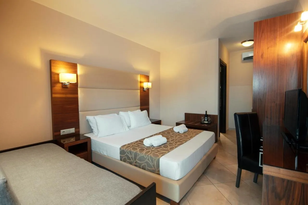 Apartamentele cu aer condiționat includ o baie cu duș, o bucătărie complet echipată, un balcon cu vedere la Muntele Athos, un televizor cu ecran plat cu canale prin cablu și un uscător de păr.