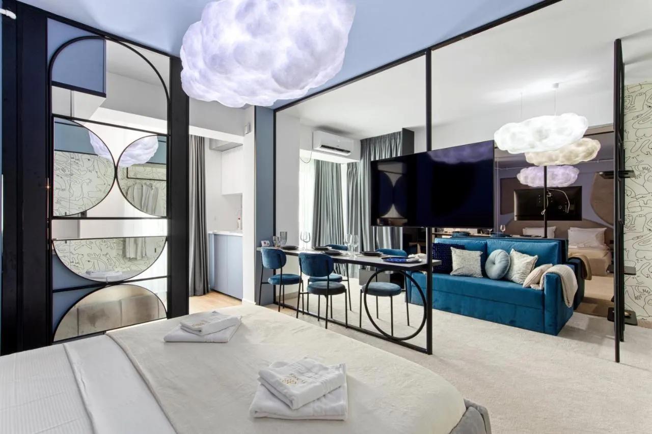Unitățile din complexul de apartamente sunt dotate cu aer condiționat, o zonă de relaxare, un televizor cu ecran plat cu canale prin cablu, o bucătărie, o zonă de luat masa, un seif și o baie privată cu duș, halate de baie și un uscător de păr. Unele unități includ o terasă și/sau un balcon cu vedere la mare și o zonă de luat masa în aer liber. În complexul de apartamente, toate unitățile includ lenjerie de pat și prosoape.