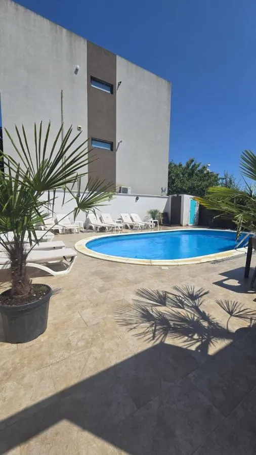 Dimensiuni: 27 mp Numar de camere: 2 camere Guests will have a special experience as this holiday home provides a private pool. Guests will find a stovetop, a refrigerator and a microwave in the kitchen. The holiday home also has a barbecue. The air-conditioned holiday home offers a flat-screen TV with cable channels, a washing machine, a private entrance, soundproof walls as well as garden views. The unit offers 2 beds.