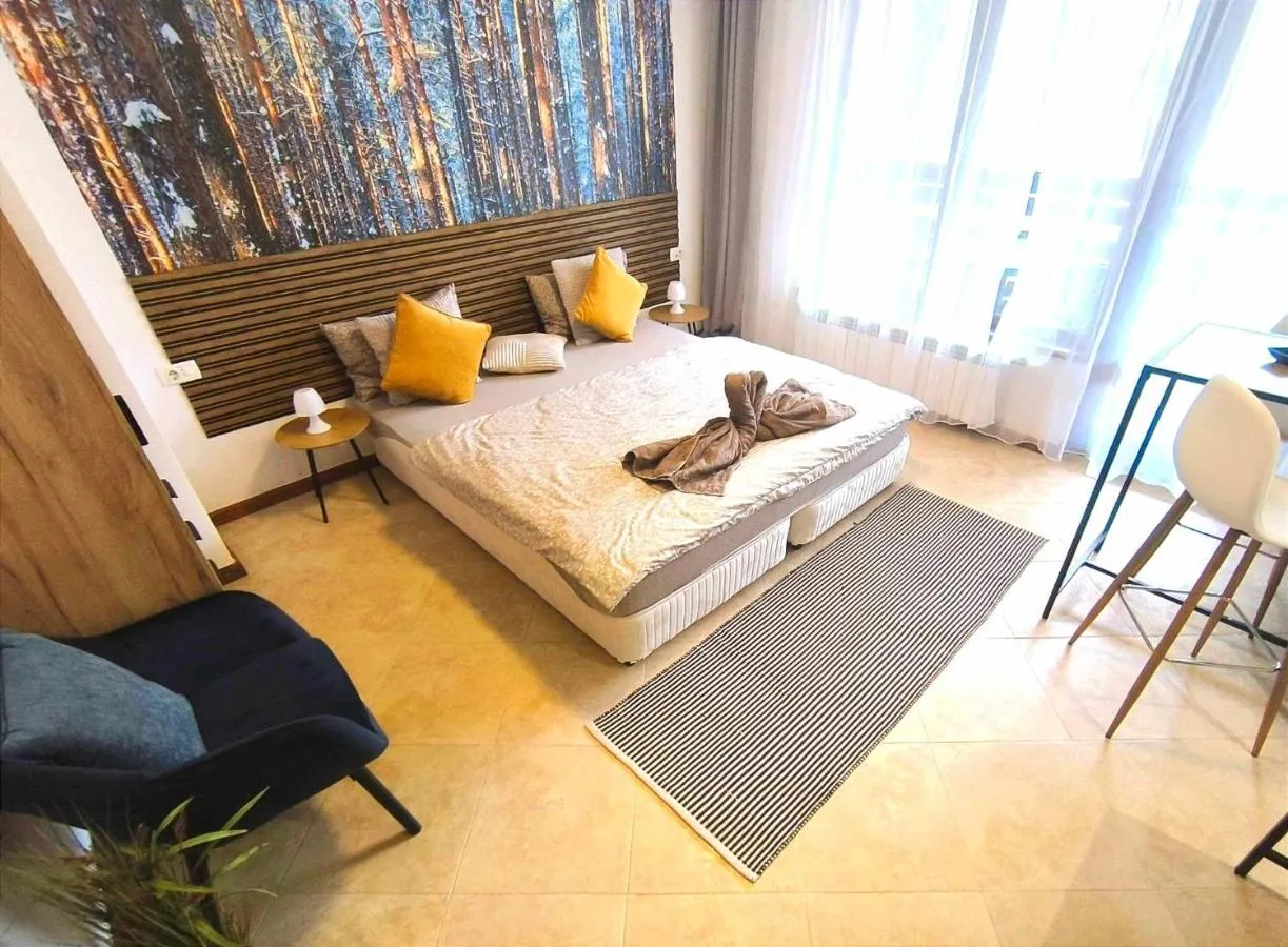 Dimensiuni: 66 mp Numar de camere: 1 camera This luxurious apartment features a pool with a view, a hot tub and a sauna. This spacious apartment is comprised of 1 living room, 1 separate bedroom and 1 bathroom with a bath and free toiletries. In the fully equipped kitchen, guests will find a stovetop, a refrigerator, kitchenware and an oven. Featuring a terrace with garden views, this apartment also offers air conditioning and a flat-screen TV. The unit offers 2 beds.