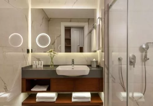 General : Seif Pardoseală de lemn sau parchet Fier de călcat Facilităţi de călcat Încălzire Izolare fonică Aer condiţionat Accesibilitate: Etaje superioare accesibile cu liftul Media/Tehnologie: TV cu ecran plat TV Telefon Canale prin cablu Canale prin satelit Servicii: Serviciu de trezire Baie: Prosoape Articole de toaletă gratuite Papuci de casă Uscător de păr Toaletă Duş Hârtie igienică Baie privată Facilităţile camerei: Priză lângă pat Mâncăruri și băuturi: Aparat pentru prepararea de ceai/cafea Minibar Dormitor: Lenjerie de pat Garderobă sau dulap Vedere: Vedere la oraș Bucătărie: Cană fierbător Produse de curățenie Distanțare fizică: Aer condiționat individual pentru fiecare cameră de la proprietate