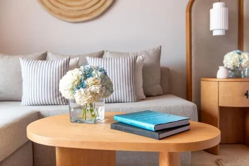 Dimensiuni: 80 mp Numar de camere: 3 camere Această suită spațioasă este separată de clădirea principală și oferă terasă privată cu vedere la ocean. De asemenea, include un living separat și o baie din marmură cu duș separat, cadă și articole de toaletă gratuite. Suita are 1 pat king-size și mobilier elegant cu un dulap mare.