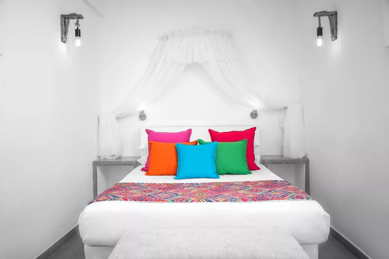 Cu arce interne și pereți albi, studiourile și apartamentele duplex sunt luminoase și aerisite. Fiecare este dotat cu aer condiționat, televizor, frigider, cafetieră și uscător de păr. Toate se deschid către o terasă sau un balcon privat.