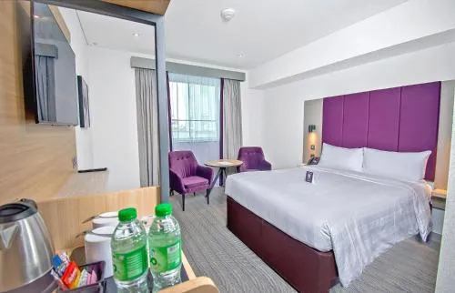 Dimensiuni: 24 mp Numar de camere: 10 camere Această cameră spațioasă are aer condiționat, pat queen-size și TV cu ecran plat cu canale prin satelit. Camera este decorată cu mobilier modern în tonuri de violet și podea cu mochetă. Fumatul este permis în această cameră.
