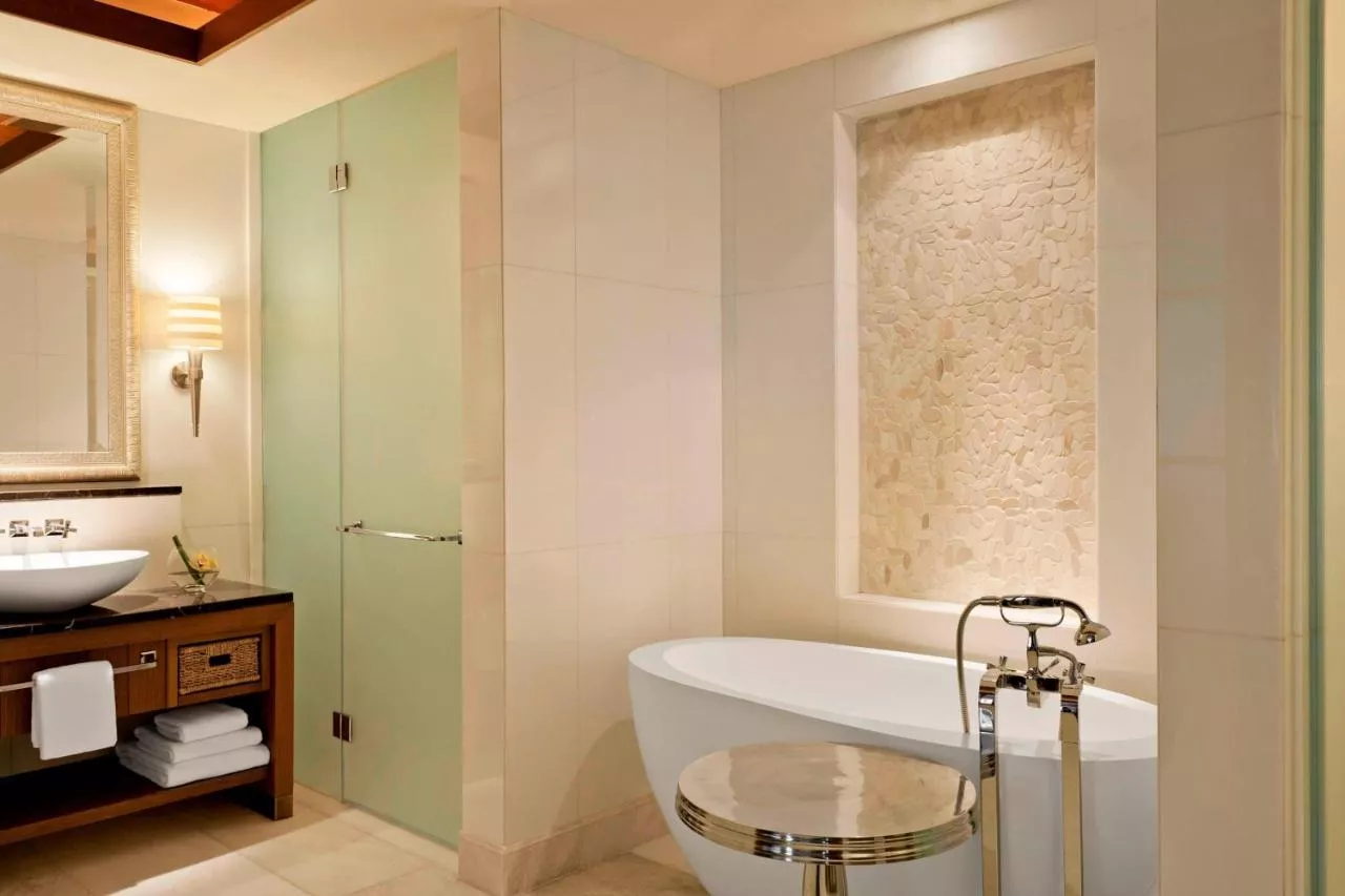 Cu un decor în stil mediteranean, camerele spațioase de la The St. Regis Saadiyat includ paturi cu pilote și perne de lux, un televizor și un stativ pentru iPod. Baia privată este dotată cu o chiuvetă dublă, o cadă independentă, un duș cu efect de ploaie și produse de toaletă Remède.