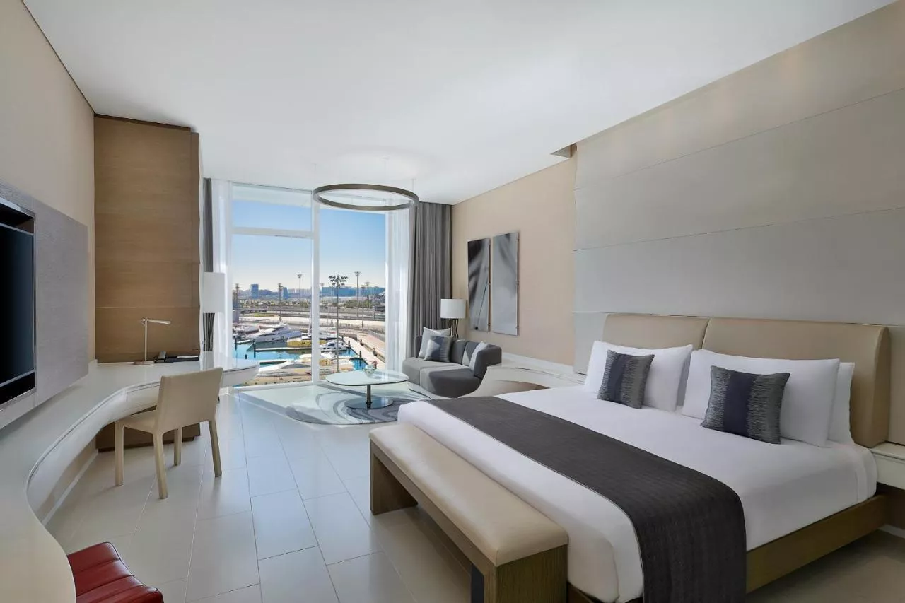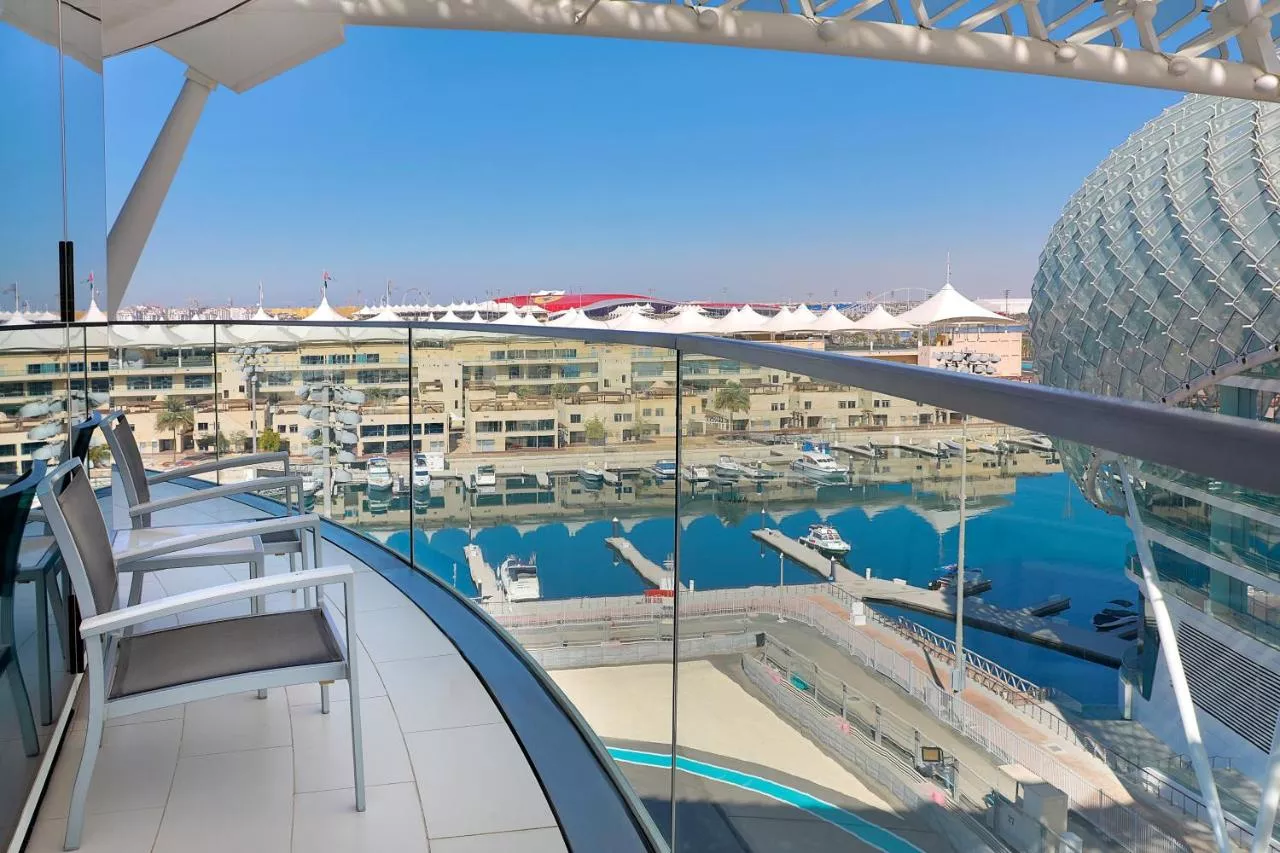 W Abu Dhabi - Yas Island se distinge printr-un design unic, fiind amplasat jumătate pe uscat și jumătate pe apă. Oferă numeroase locații de luat masa și lounge-uri, camere moderne cu iluminat ambiental și internet gratuit. Acesta oferă o vedere directă asupra circuitului de Formula 1.