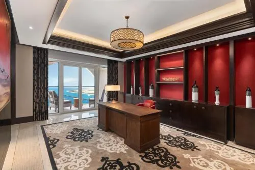 Dimensiuni: 488 mp Numar de camere: 1 camera Guests will have a special experience as this suite provides a sauna. Featuring 4 bedrooms, this spacious suite offers 4 bathrooms with a walk-in shower, a seating area and terrace where you can relax. The well-equipped kitchen features a refrigerator, kitchenware and a microwave. The air-conditioned suite offers a flat-screen TV, a minibar, a tea and coffee maker, a dining area as well as sea views. The unit has 5 beds.
