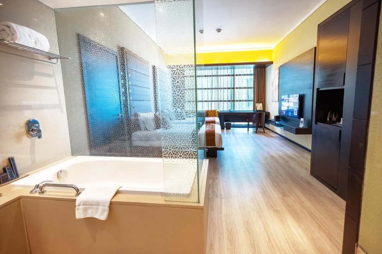General : Seif pentru laptop Seif Aer condiţionat Baie: Halat de baie Prosoape Articole de toaletă gratuite Papuci de casă Uscător de păr Toaletă Duş bideu Hârtie igienică Cadă Baie privată Accesibilitate: Etaje superioare accesibile cu liftul Media/Tehnologie: TV cu ecran plat TV Telefon Canale prin cablu Canale prin satelit Servicii: Serviciu de trezire Zonă de living: Canapea Zonă de relaxare Facilităţile camerei: Priză lângă pat Mâncăruri și băuturi: Aparat pentru prepararea de ceai/cafea Dormitor: Lenjerie de pat Garderobă sau dulap Bucătărie: Cană fierbător