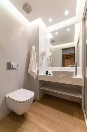 Baie: Halat de baie Prosoape Papuci de casă Uscător de păr Toaletă Duş Hârtie igienică Cadă Baie privată General : Seif Pardoseală de gresie/marmură Încălzire Plasă de ţânţari Aer condiţionat Accesibilitate: Etaje superioare accesibile cu liftul Media/Tehnologie: TV cu ecran plat TV Telefon Servicii: Serviciu de trezire Zonă de living: Canapea Exterior: Mobilier de grădină Balcon Facilităţile camerei: uscător de rufe Priză lângă pat Canapea extensibilă Bucătărie: Frigider Cană fierbător Uscător de haine Dormitor: Lenjerie de pat Garderobă sau dulap Mâncăruri și băuturi: Minibar Vedere: Vedere la oraș Distanțare fizică: Aer condiționat individual pentru fiecare cameră de la proprietate