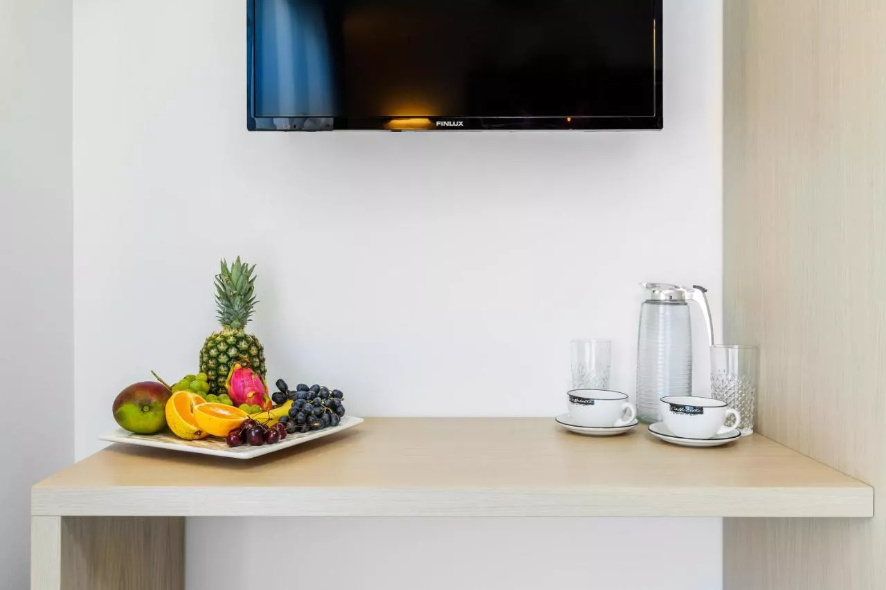 Dimensiuni: 25 mp Numar de camere: 2 camere This studio features a rooftop pool. In the kitchenette, guests will find a refrigerator, kitchenware and a tea and coffee maker. This air-conditioned studio is comprised of a flat-screen TV with satellite channels, a private bathroom as well as a balcony with garden views. The unit has 1 bed. Baie privată cu duș