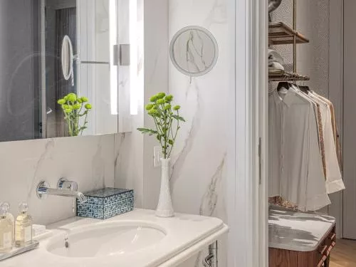 Dimensiuni: 78 mp Numar de camere: 1 camera This spacious suite consists of 1 living room, 1 separate bedroom and 2 bathrooms with a walk-in shower and free toiletries. The air-conditioned suite provides a flat-screen TV with satellite channels, soundproof walls, a minibar, a tea and coffee maker as well as city views. The unit offers 1 bed. Baie privată cu duș