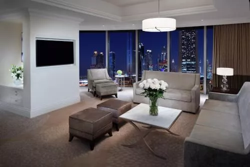Dimensiuni: 167 mp Numar de camere: 2 camere Aceste suite opulente cu 2 dormitoare ale hotelului sunt pe cât de unice, pe atât de elitiste şi oferă vedere panoramică la Dubai. The Grand Downtown Club Suites conțin, printre multe alte caracteristici, un living spațios, o terasă pentru prepararea băuturilor și o cămară, o zonă de luat masa încântătoare, un dormitor dotat cu facilități exclusive, toalete somptuoase și vedere panoramică la oraș și la Downtown Dubai. Accesul la Club Lounge este un privilegiu binevenit, cu scaune elegante şi uni meniu rafinat de băuturi răcoritoare, servit pe tot parcursul zilei. Baie privată cu cadă