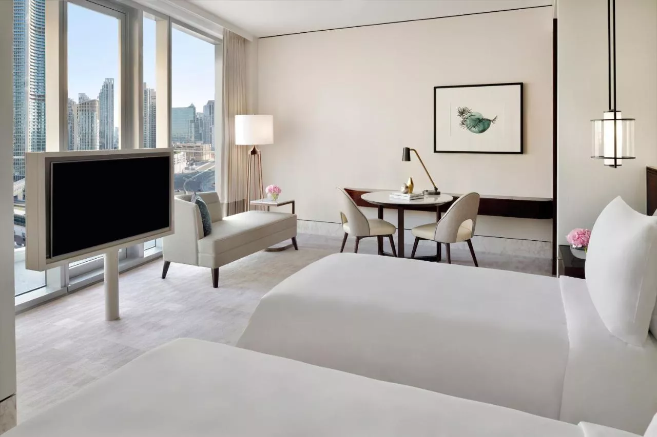 Dimensiuni: 63 mp Numar de camere: 4 camere Această cameră dublă are paturi twin, dulap încorporat și vedere la orizontul centrului orașului Dubai. Pentru cei care doresc spațiu suplimentar, camerele se pot conecta la o suită Executive, printr-un foaier.