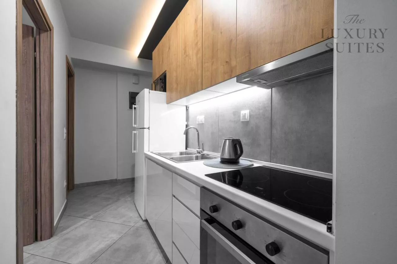 Dimensiuni: 33 mp Numar de camere: 1 camera The studio features air conditioning, a seating area, as well as a private bathroom boasting a shower and a hairdryer. The fully equipped kitchen has a stovetop, a refrigerator, kitchenware and an oven. The studio provides a wardrobe, an electric kettle, a sofa, a tiled floor and a flat-screen TV. The unit has 2 beds. Baie privată cu duș