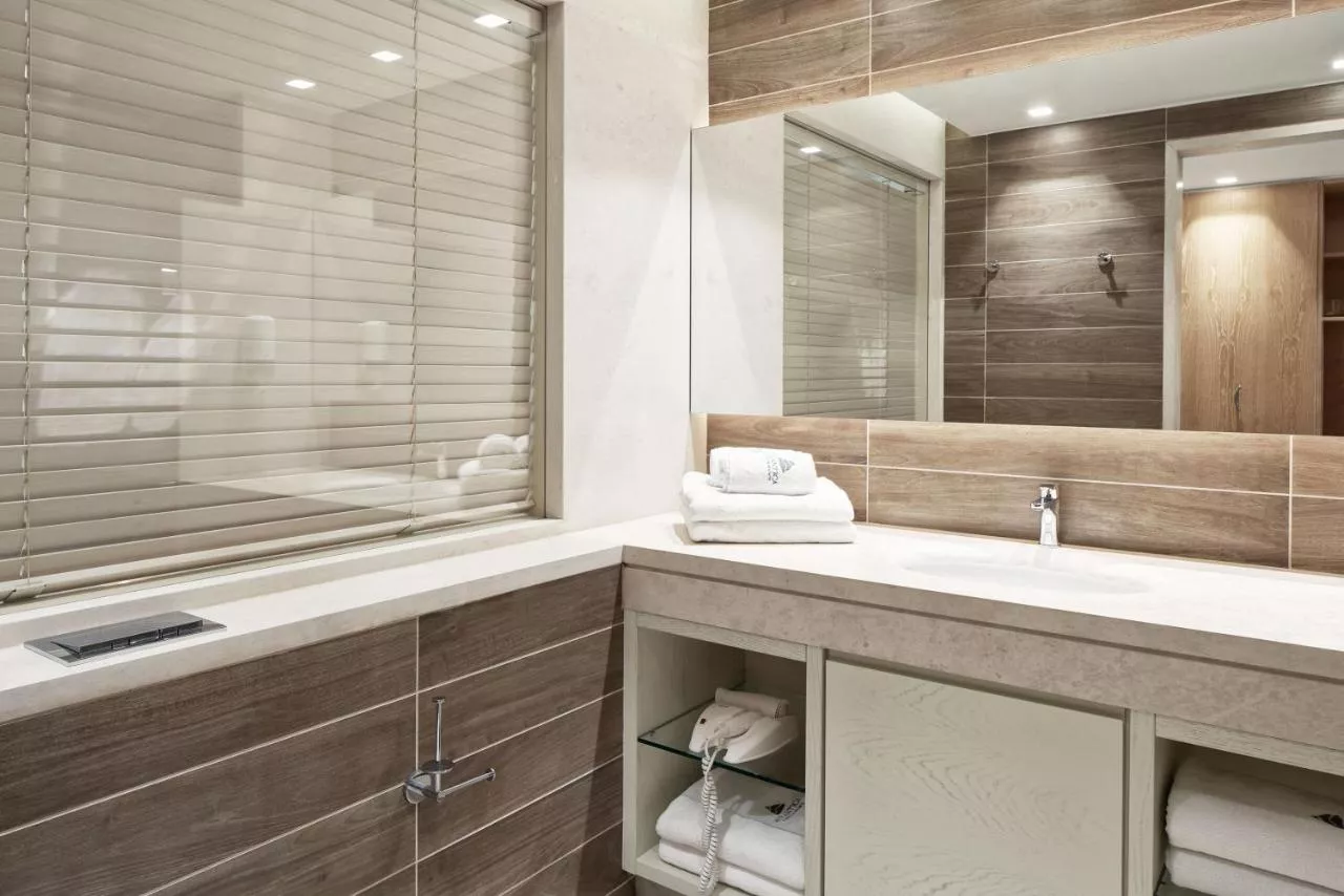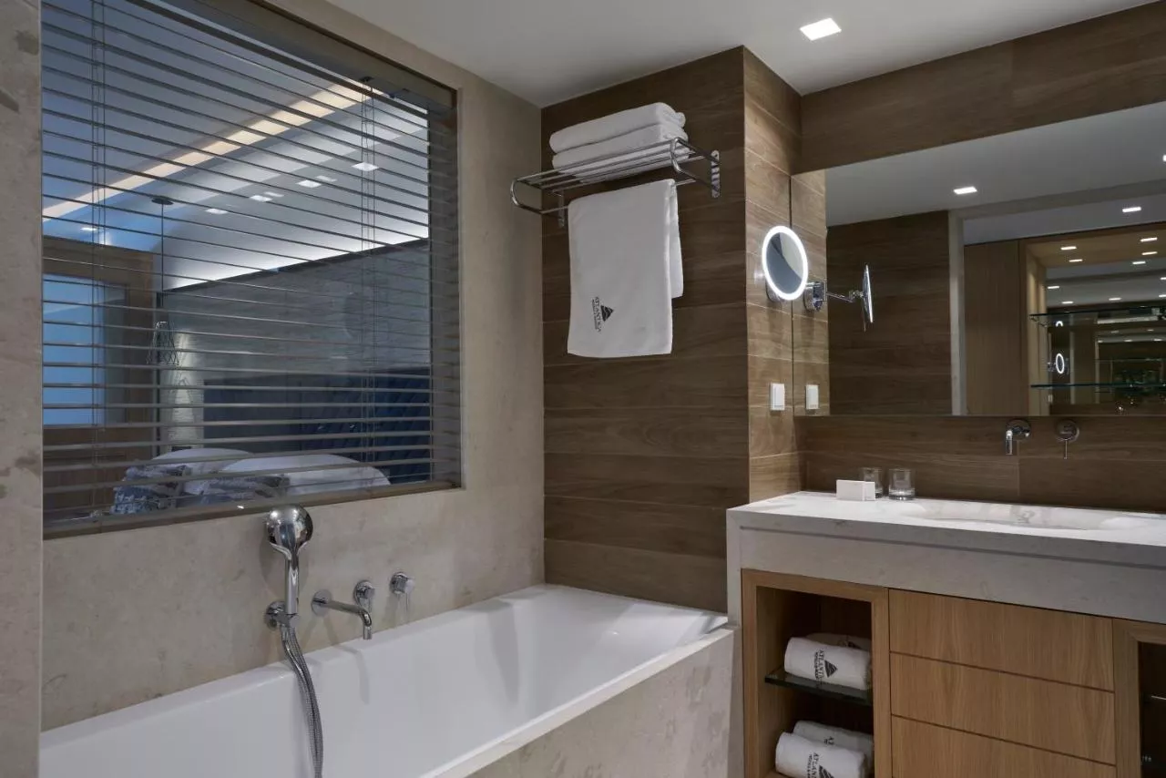 Baie: Halat de baie Prosoape Toaletă suplimentară Papuci de casă Cadă sau duş Uscător de păr Toaletă Hârtie igienică Baie privată Divertisment și servicii pentru familii: Capace de siguranță pentru prize Porți de siguranță pentru copiii mici General : Seif Pardoseală de gresie/marmură Plasă de ţânţari Aer condiţionat Vedere: Vedere la mare Media/Tehnologie: TV cu ecran plat TV Telefon Canale prin cablu Canale prin satelit Servicii: Serviciu de trezire Zonă de living: Canapea Exterior: Mobilier de grădină Balcon Facilităţile camerei: uscător de rufe Priză lângă pat Canapea extensibilă Mâncăruri și băuturi: Aparat pentru prepararea de ceai/cafea Bucătărie: Frigider Cană fierbător Dormitor: Lenjerie de pat Garderobă sau dulap Curățenie și dezinfectare: Dezinfectant pentru mâini