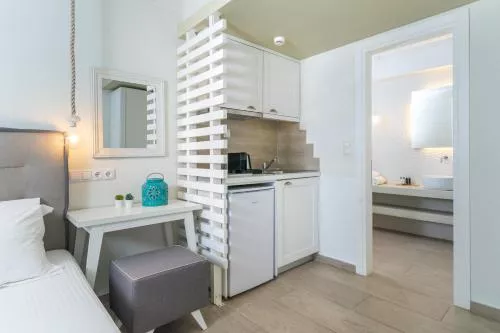 Dimensiuni: 22 mp Numar de camere: 2 camere Amenajat în culori pastelate, cu mobilier modern, acest studio dotat cu aer condiționat are paturi și lenjerie de pat Coco-Mat, acces gratuit la internet WiFi și un balcon privat cu vedere la mare, la grădină sau la munte. Include o chicinetă bine utilată cu frigider, plită și fierbător electric. Are o baie modernă cu duș sau cadă, precum și articole de toaletă gratuite.