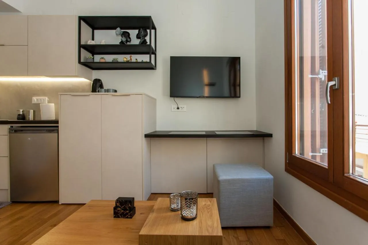 Cu o decorațiune modernă în culori neutre, Agora Suites climatizat are o zonă de relaxare cu canapele din piele și televizor cu ecran plat. Include o bucătărie bine echipată și o masă de luat masa. Acest apartament pe două niveluri are o baie contemporană cu uscător de păr.