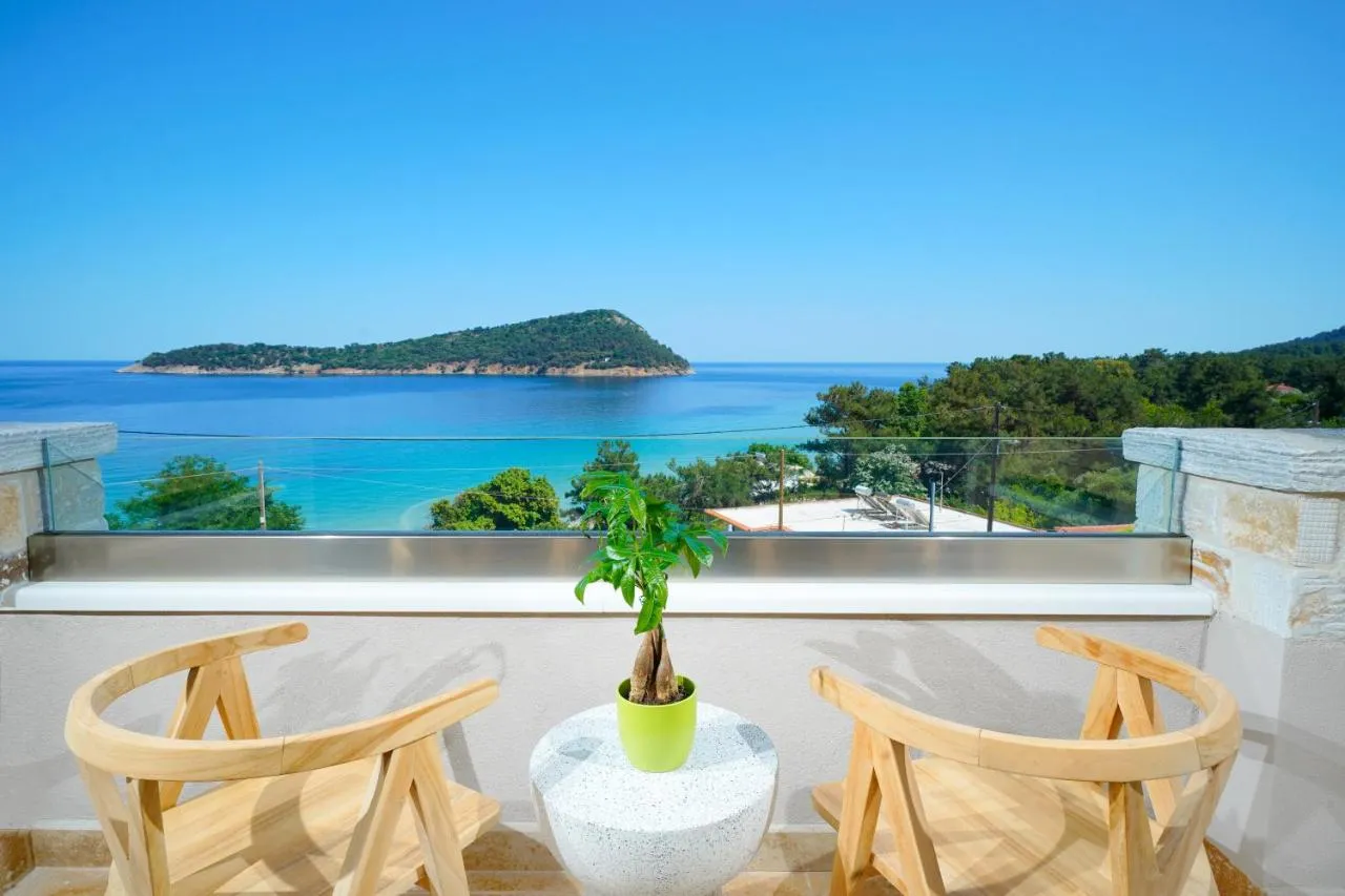 Dimensiuni: 26 mp Numar de camere: 8 camere Camera dublă spaţioasă are intrare privată, aer condiţionat, baie privată cu duș tip walk-in și balcon cu vedere la mare. Unitatea include 3 paturi. Baie privată cu duș