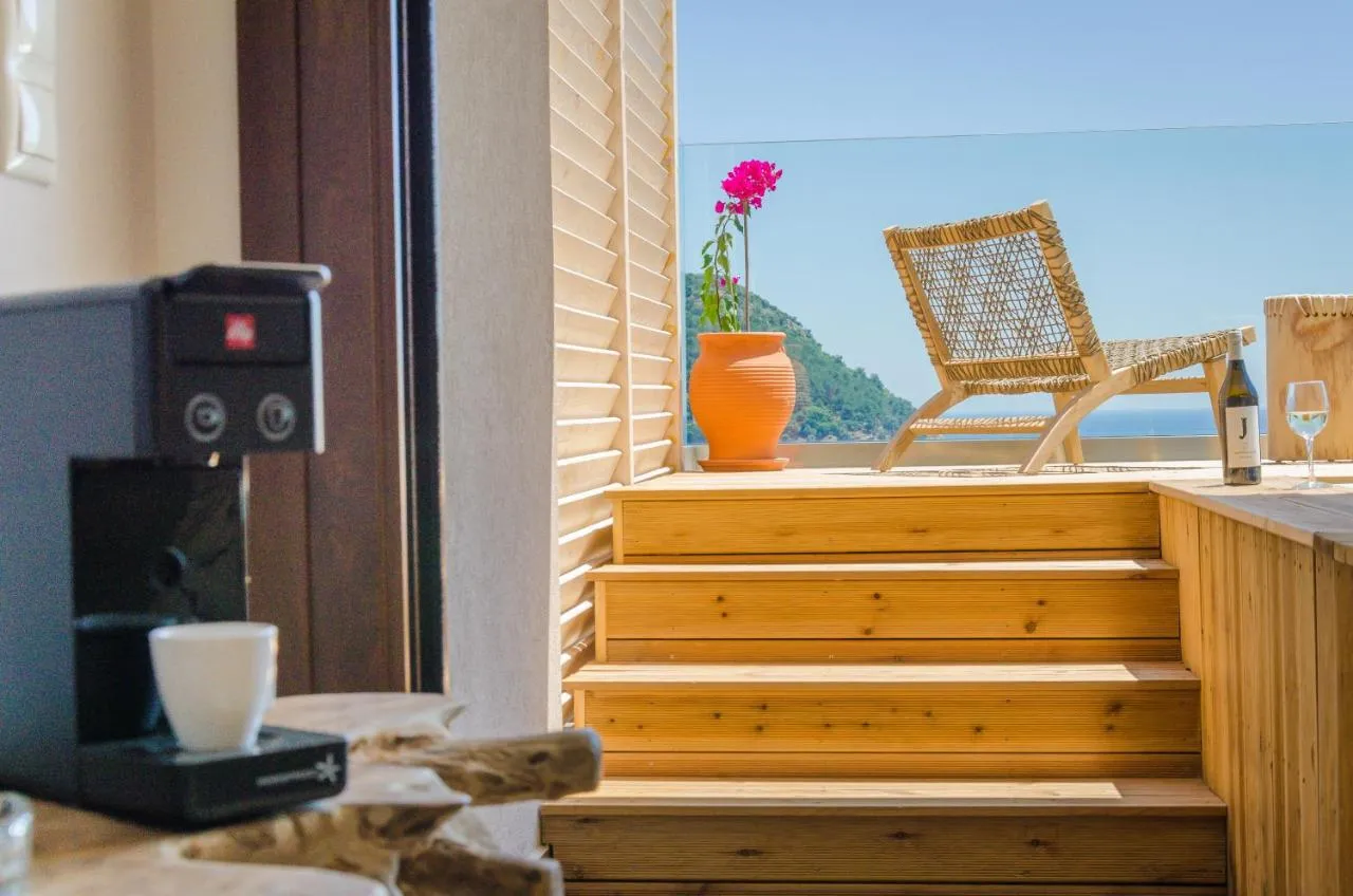 General : Seif Pardoseală de gresie/marmură Intrare privată Încălzire Izolare fonică Plasă de ţânţari Aer condiţionat Vedere: Vedere la mare Vedere la munte Vedere la curtea interioară Vedere la grădină Vedere la punct de atracţie Accesibilitate: Etaje superioare accesibile doar pe scări Unitate situată integral la parter Media/Tehnologie: TV cu ecran plat TV Canale prin satelit Zonă de living: Canapea Zonă de relaxare Exterior: Mobilier de grădină Patio Balcon Baie: Prosoape Articole de toaletă gratuite Uscător de păr Toaletă Duş Hârtie igienică Baie privată Facilităţile camerei: Priză lângă pat Canapea extensibilă Bucătărie: Frigider Dormitor: Lenjerie de pat Garderobă sau dulap Divertisment și servicii pentru familii: Porți de siguranță pentru copiii mici