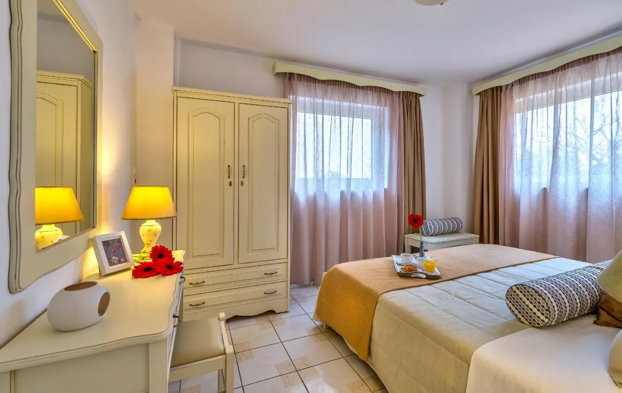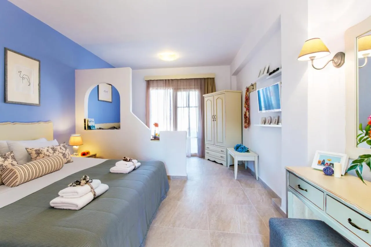 Studiourile și apartamentele cu aer condiționat de la Agrimia au vedere la piscină sau la grădină de pe balcoanele lor private. Fiecare dispune de o chicinetă, o zonă de luat masa și un canapea. Facilitățile includ de asemenea un seif, fier de călcat, televizor prin satelit și o baie privată cu duș.