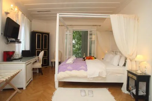 Acest hotel boutique are o grădină frumoasă unde oaspeții se pot bucura de micul dejun. Restaurantul Aigli servește meniuri delicioase (este necesară rezervare). Alte facilități includ un bar de vinuri cu o varietate largă de vinuri locale și un bar unde vă puteți bucura de cocktailuri cubaneze și trabucuri.