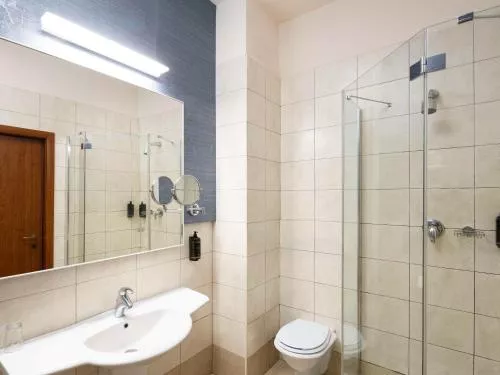 Dimensiuni: 18 mp Numar de camere: 2 camere Această cameră dublă are baie privată cu duș, uscător de păr, papuci și articole de toaletă gratuite. Camera dublă are podea cu mochetă, zonă de relaxare cu TV cu ecran plat cu canale prin satelit, aer condiționat, pereți izolați fonic și minibar. Unitatea are 1 pat. Baie privată cu duș