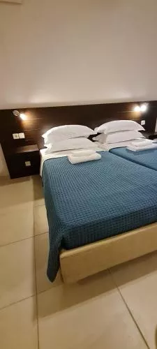 Toate camerele cu aer condiționat de la Aithrion au o decorare modernă cu mobilier din lemn închis la culoare, fiind dotate cu frigider și televizor. Fiecare are o baie privată cu uscător de păr.