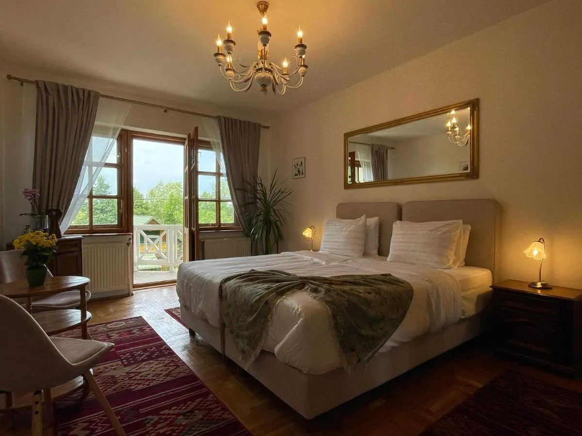 Baie: Halat de baie Prosoape Articole de toaletă gratuite Papuci de casă Uscător de păr Prosoape/lenjerie de pat contra cost Toaletă Duş Hârtie igienică Baie privată General : Detector de monoxid de carbon Pardoseală de lemn sau parchet Fier de călcat Ventilator Facilităţi de călcat Hipoalergică Încălzire Izolare fonică Bucătărie: Mașină de cafea Masă Cană fierbător Accesibilitate: Etaje superioare accesibile doar pe scări Media/Tehnologie: TV cu ecran plat TV Serviciu de streaming (ex. Netflix) Canale prin satelit Dormitor: Paturi extra lungi (> 2 metri) Lenjerie de pat Garderobă sau dulap Vedere: Vedere la munte Vedere la curtea interioară Vedere la grădină Zonă de living: Canapea Zonă de relaxare Șemineu Zonă de luat masa Exterior: Mobilier de grădină Terasă Patio Grătar Balcon Zonă de luat masa în aer liber Facilităţile camerei: Priză lângă pat Pat pliant Mâncăruri și băuturi: Aparat pentru prepararea de ceai/cafea