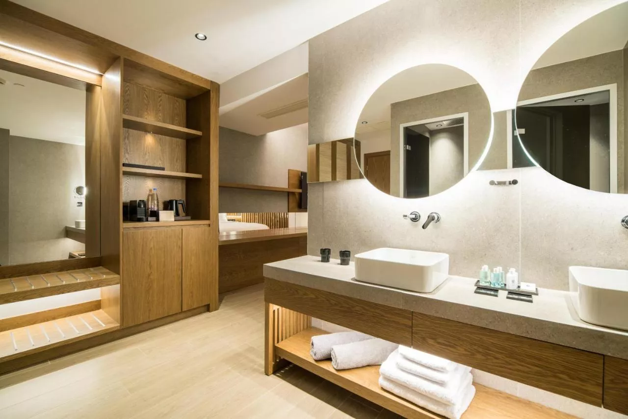 Baie: Halat de baie Prosoape Articole de toaletă gratuite Papuci de casă Uscător de păr Duş Hârtie igienică Baie privată General : Seif Fier de călcat Pardoseală de gresie/marmură Încălzire Izolare fonică Aer condiţionat Vedere: Vedere la mare Media/Tehnologie: TV cu ecran plat TV Telefon Canale prin satelit Servicii: Serviciu de trezire Facilităţile camerei: Priză lângă pat Mâncăruri și băuturi: Aparat pentru prepararea de ceai/cafea Minibar Exterior: Balcon Dormitor: Garderobă sau dulap Activităţi: Cadă cu hidromasaj
