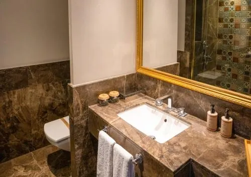 Baie: Halat de baie Prosoape Articole de toaletă gratuite Papuci de casă Uscător de păr Cadă spa Toaletă Duş Hârtie igienică Cadă Baie privată Bucătărie: Mașină de cafea Cană fierbător General : Seif Pardoseală de lemn sau parchet Fier de călcat Facilităţi de călcat Aer condiţionat Vedere: Vedere la mare Vedere la munte Vedere la grădină Media/Tehnologie: TV cu ecran plat Telefon Canale prin satelit Zonă de living: Canapea Zonă de relaxare Facilităţile camerei: uscător de rufe Priză lângă pat Canapea extensibilă Mâncăruri și băuturi: Aparat pentru prepararea de ceai/cafea Minibar Exterior: Balcon Dormitor: Lenjerie de pat Garderobă sau dulap