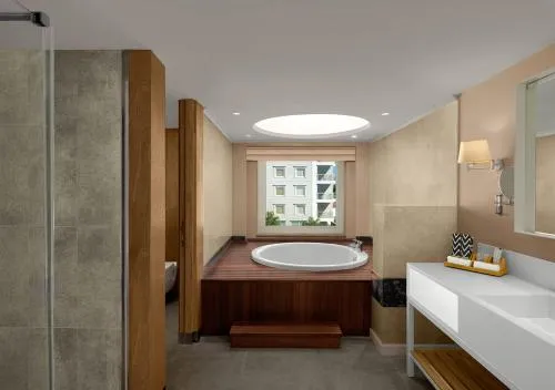 Baie: Halat de baie Prosoape Articole de toaletă gratuite Papuci de casă Uscător de păr Cadă spa Toaletă Duş Hârtie igienică Cadă Baie privată Bucătărie: Mașină de cafea Cană fierbător General : Seif Pardoseală de lemn sau parchet Fier de călcat Facilităţi de călcat Aer condiţionat Vedere: Vedere la mare Media/Tehnologie: TV cu ecran plat Telefon Canale prin satelit Zonă de living: Canapea Zonă de relaxare Facilităţile camerei: uscător de rufe Priză lângă pat Canapea extensibilă Exterior: Balcon Dormitor: Lenjerie de pat Garderobă sau dulap Mâncăruri și băuturi: Minibar
