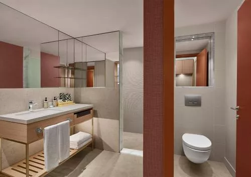 Baie: Halat de baie Prosoape Articole de toaletă gratuite Papuci de casă Uscător de păr Toaletă Duş Hârtie igienică Baie privată Bucătărie: Mașină de cafea Cană fierbător General : Seif Pardoseală de lemn sau parchet Fier de călcat Facilităţi de călcat Încălzire Cameră(e) comunicantă(e) disponibilă(e) Aer condiţionat Vedere: Vedere la mare Vedere la piscină Media/Tehnologie: TV cu ecran plat TV Telefon Canale prin satelit Zonă de living: Canapea Facilităţile camerei: uscător de rufe Priză lângă pat Canapea extensibilă Mâncăruri și băuturi: Aparat pentru prepararea de ceai/cafea Minibar Exterior: Balcon Dormitor: Lenjerie de pat Garderobă sau dulap