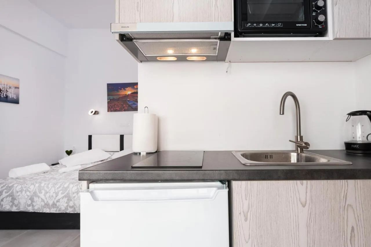 Mobilate simplu, toate studiourile și apartamentele au o chicinetă cu frigider, mini cuptor cu plite de gătit și masă de luat masa. Un televizor cu ecran plat și aer condiționat sunt incluse.