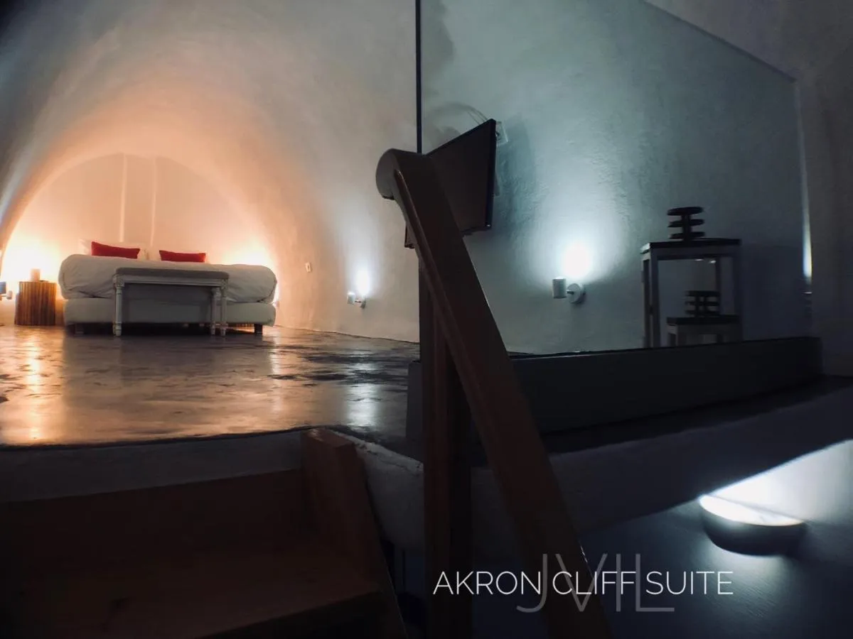 Situat la 300 de metri de Muzeul Arheologic din Thera, traditionalul Akron Cliff Suite, în stil de peșteră, situat pe marginea Caldera, oferă cazare în centrul orașului Fira. Proprietatea oferă vederi spre mare, Golful Fira și vulcan, fiind la 300 de metri de Megaro Gyzi.