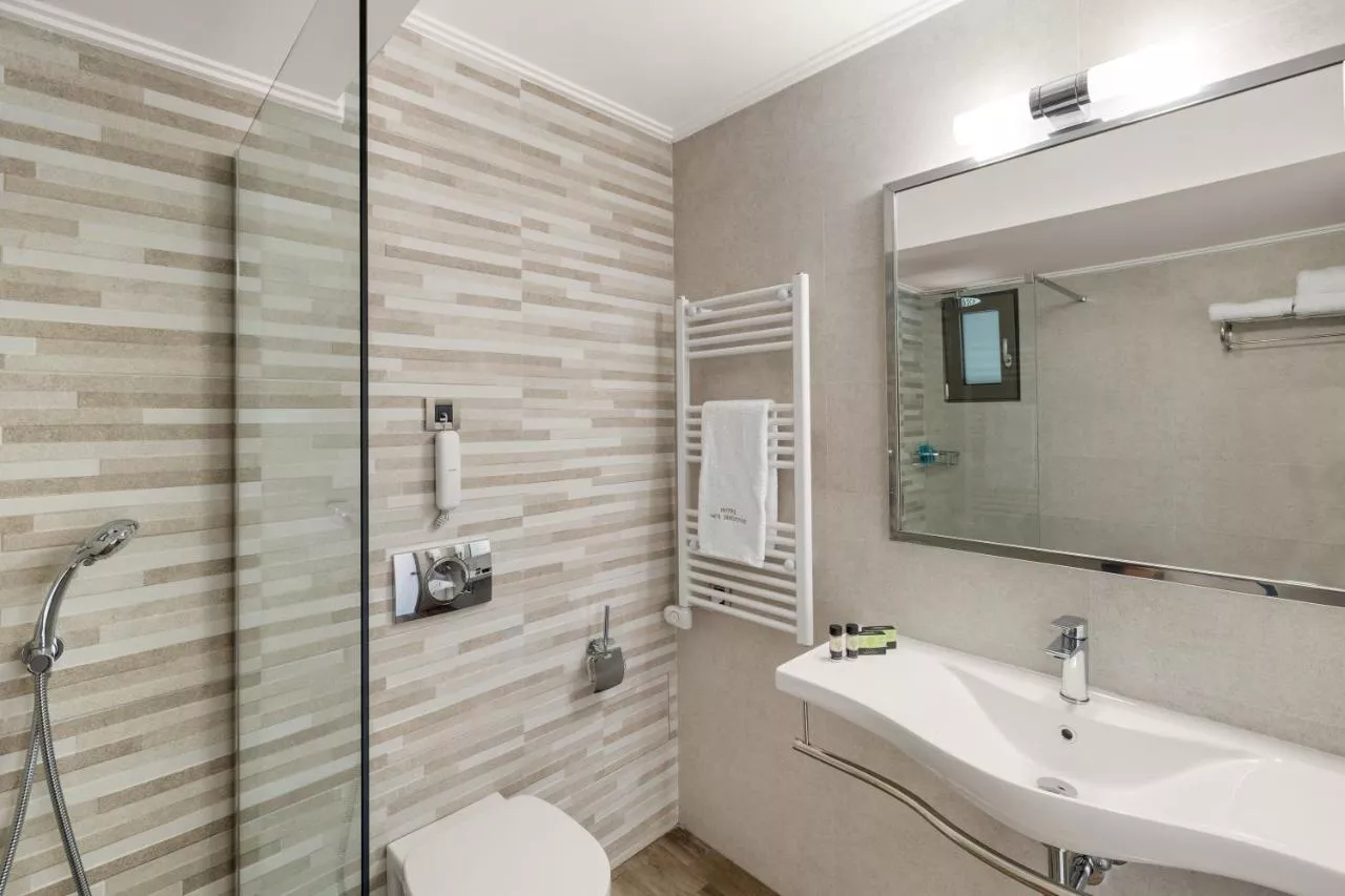 Facilităţile camerei: Seif Priză lângă pat Hipoalergică Pardoseală de gresie/marmură Canapea extensibilă Încălzire Garderobă sau dulap Produse de curățenie Izolare fonică Aer condiţionat Exterior/Vedere: Vedere la mare Balcon Accesibilitate: Etaje superioare accesibile cu liftul Media/Tehnologie: TV cu ecran plat Telefon Mâncăruri și băuturi: Mobilier de grădină Frigider Servicii/Suplimente: Prosoape Lenjerie de pat Baie: Uscător de păr Toaletă Hârtie igienică Cadă Baie privată Curățenie și dezinfectare: Dezinfectant pentru mâini