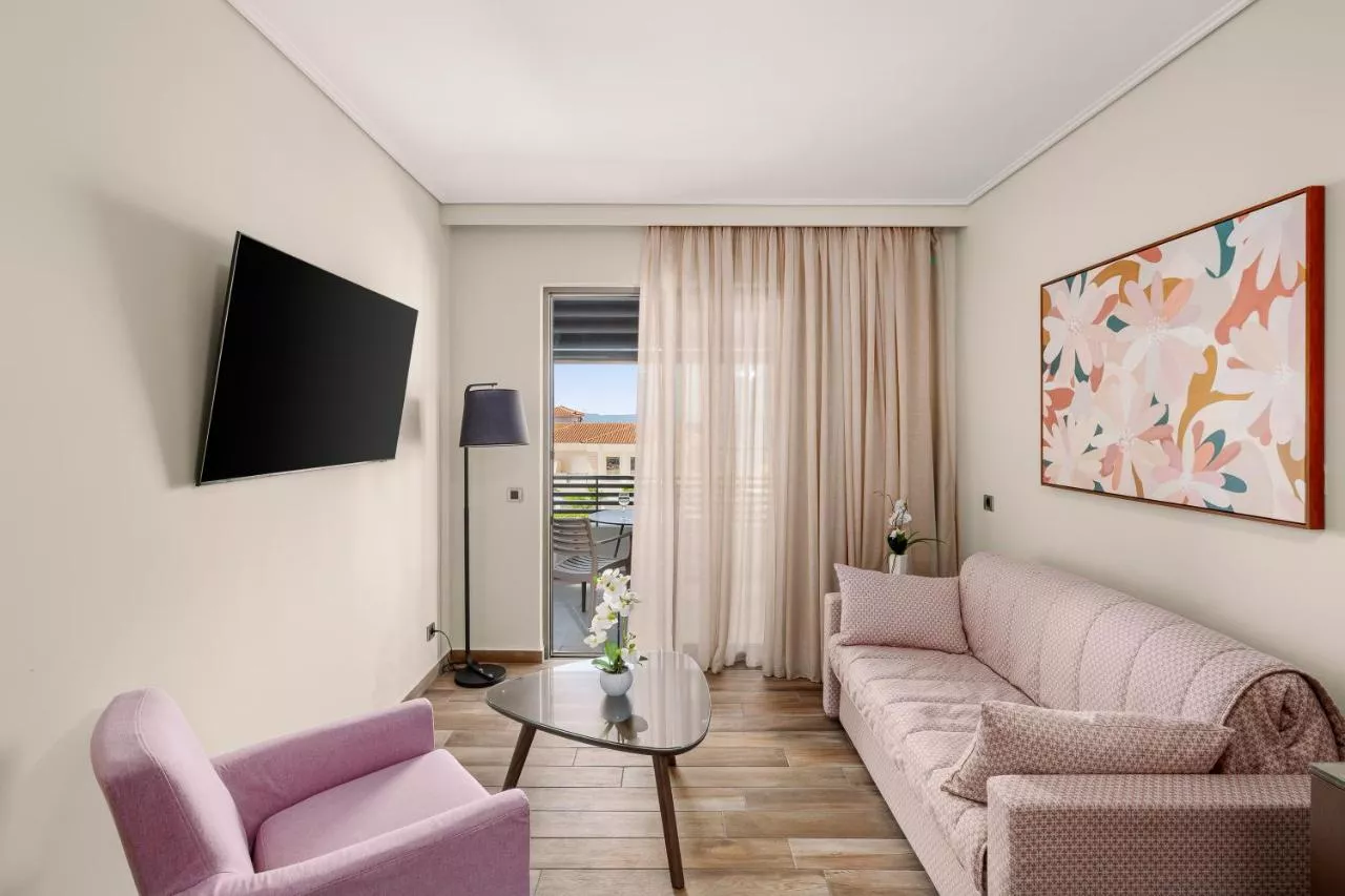 Dimensiuni: 23 mp Numar de camere: 1 camera Luxurious room with view on the Messinian gulf includes hi-fi stereo, designer toiletries, bathrobes and slippers. Baie privată cu cadă