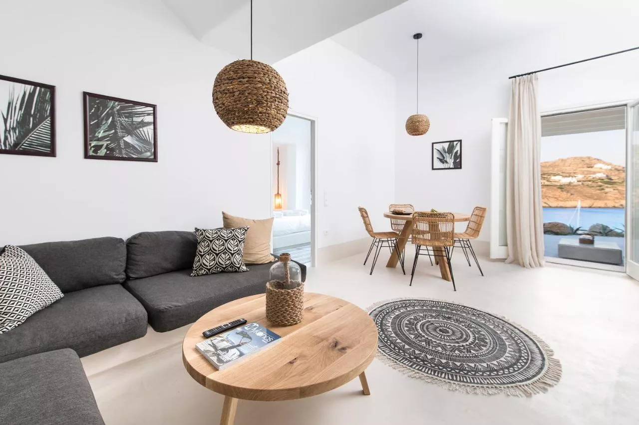 Dotate cu paturi și canapele încorporate și decorate minimalist în tonuri soft, fiecare vilă și suită are un televizor cu ecran plat cu canale prin satelit și o baie modernă cu duș. Majoritatea unităților oferă vederi la Marea Egee, în timp ce altele oferă vederi spre grădini. Extra includ produse de toaletă gratuite și un uscător de păr.