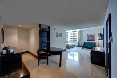 Dimensiuni: 48 mp Numar de camere: 6 camere 48 to 65 sqm approx . 1 Bedroom suite with city view, 1 king bedroom with attached bathroom and separate living area, safe deposit box, flat screen tv, separate living room with work area, tea and coffee maker, mini- fridge, wifi access for multiple devices and 24 hrs room service. Baie privată cu cadă