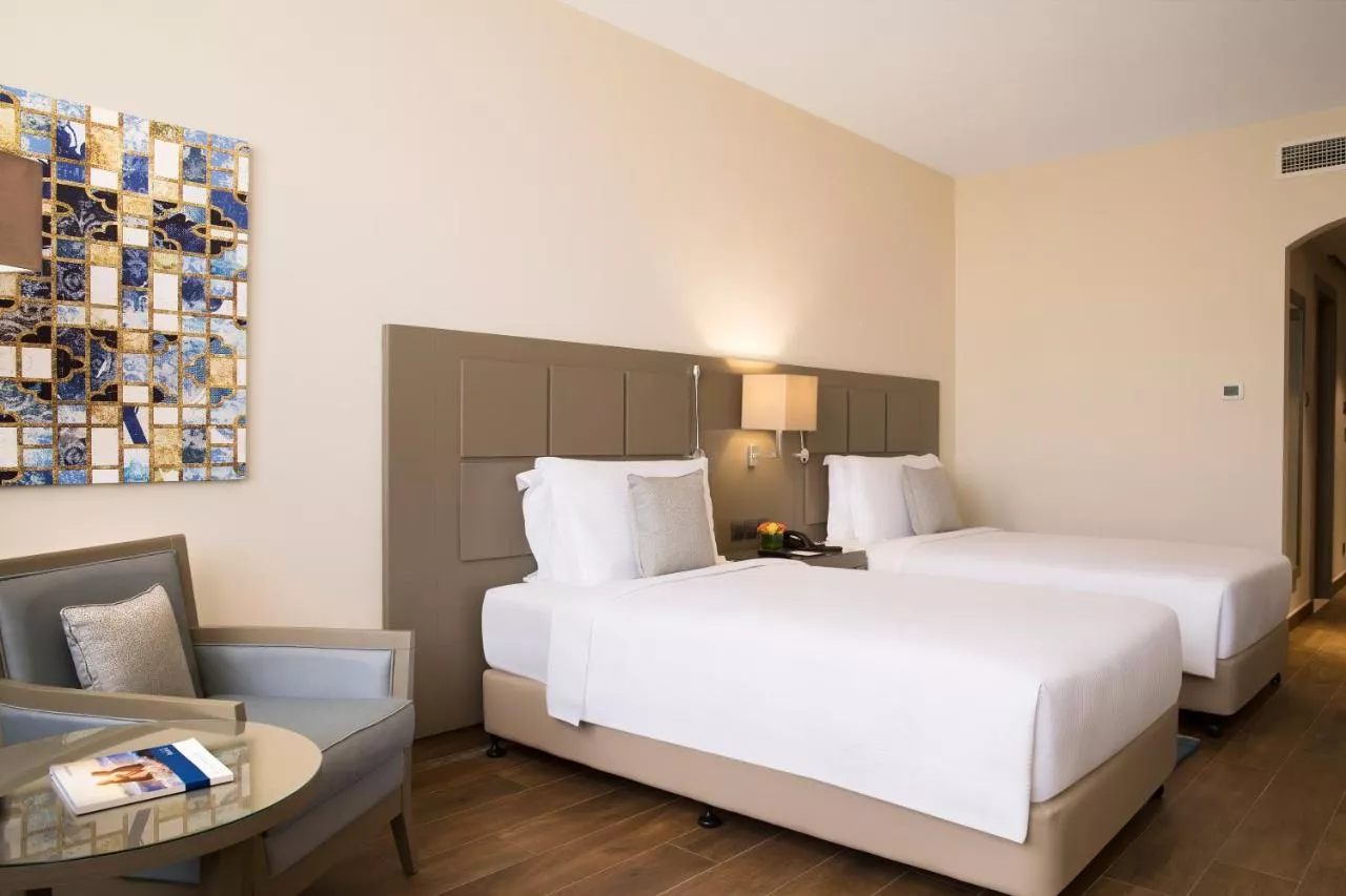 Dimensiuni: 30 mp Numar de camere: 2 camere Oferind vedere la Golful Persic și la plajă, camerele Premium beneficiază de o amplasare ideală, pe partea stângă a complexului, în clustere. Toate camerele confortabile au design distinctiv cu o atingere nubiană.