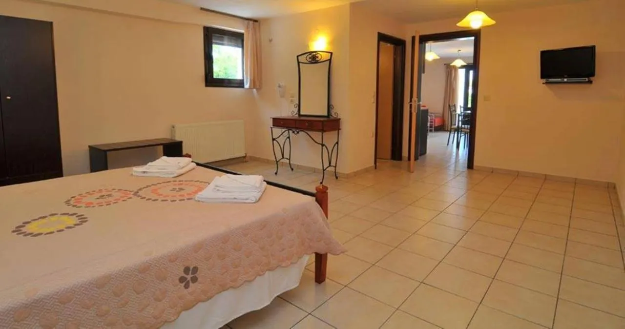 Toate unitățile cu aer condiționat sunt spațioase și au acces la un balcon sau o terasă mobilată, cu vedere la Marea Egee, grădină sau munte. Acestea dispun de o chicinetă cu frigider, plite de gătit și aparat de cafea. Un televizor LCD cu DVD player este disponibil în zona de relaxare.